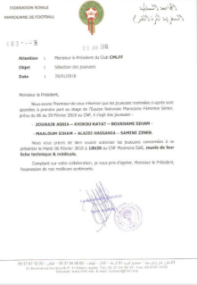 يذكر أن العناصر الوطنية ستدخل المعسكر المزمع إقامته بالمركز الوطني للتكوين بالمعمورة ، يوم الثلاثاء 06 فبراير إبتداء من الساعة العاشرة والنصف صباحا.