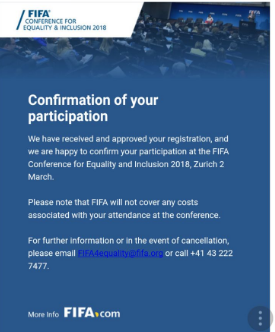 توصلت السيدة إلا خديجة ، عضوة المكتب المسيرالنادي البلدي لكرة القدم النسوية ،ورئيسة المجموعة الوطنية لكرة القدم النسوية ،بدعوة من الإتحاد الدولي لكرة القدم – فيف- للمشاركة في المؤتملر الدولي حول الإدماج والمساواة في عالم كرة القدم .
