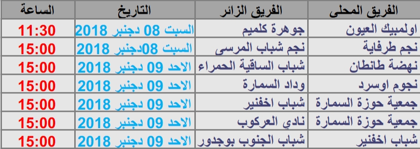 البرنامج الكامل لمباريات الجولة الثامنة من البطولة الوطنية لكرة القدم القسم الثاني هواة شطر الصحراء :