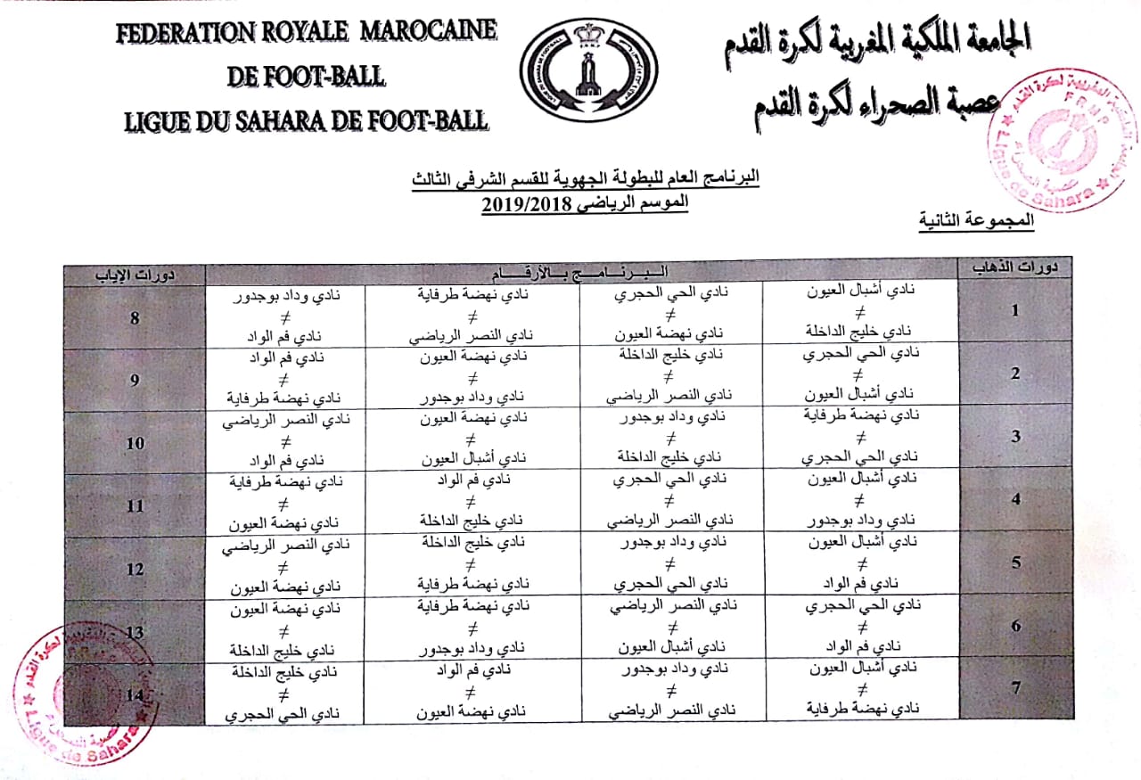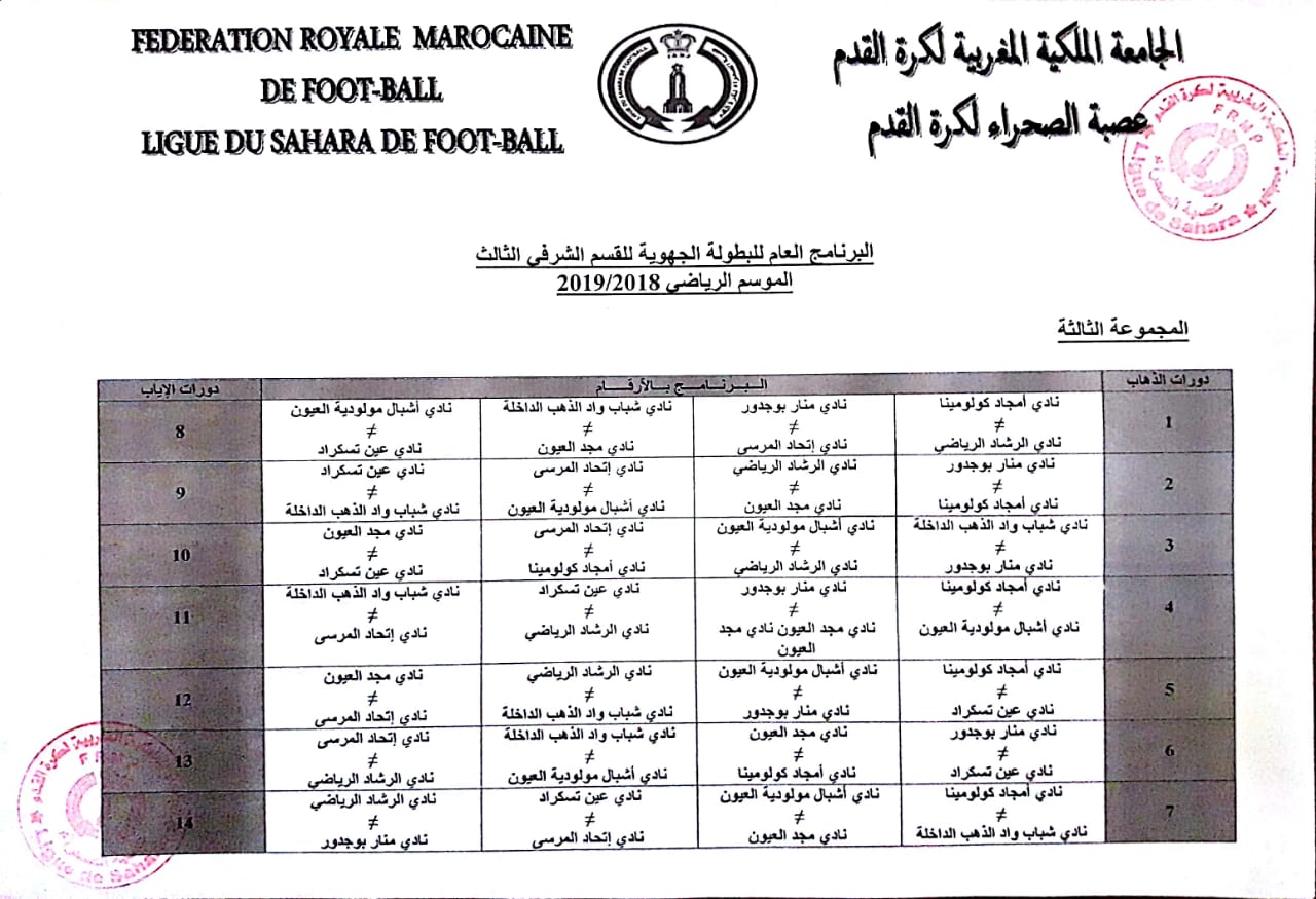 البرنامج العام للبطولة الجهوية للقسم الشرفي الثالثسياسة إدارة الموقع نشر في 17 يناير 2019 الساعة 1 و 45 دقيقة جديد الصحراء الرياضي : العيون مشاركة بفايسبوكFacebookFacebookمشاركة بتويترTwitterTwitter مشاركة بواتسابWhatsAppWhatsApp Share to ارسال ايميلEmailEmail مشاركة بلينكدانLinkedInLinkedInمشاركة بمسنجرMessengerMessenger طباعةPrintطباعة رابط المشاركة :