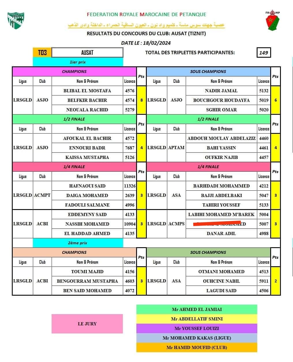 شاركت جمعية النادي البلدي للكرة الحديدية السمارة يوم أمس الأحد 18 فبراير 2024 شي من الجولة الثالثة من بطولة الكرة الحديدية وحقق فوزا مهما ببلوغها الدور ربع النهائي واكتساب 03 نقط مهمة سترصع اسم الجمعية في سلم الترتيب.