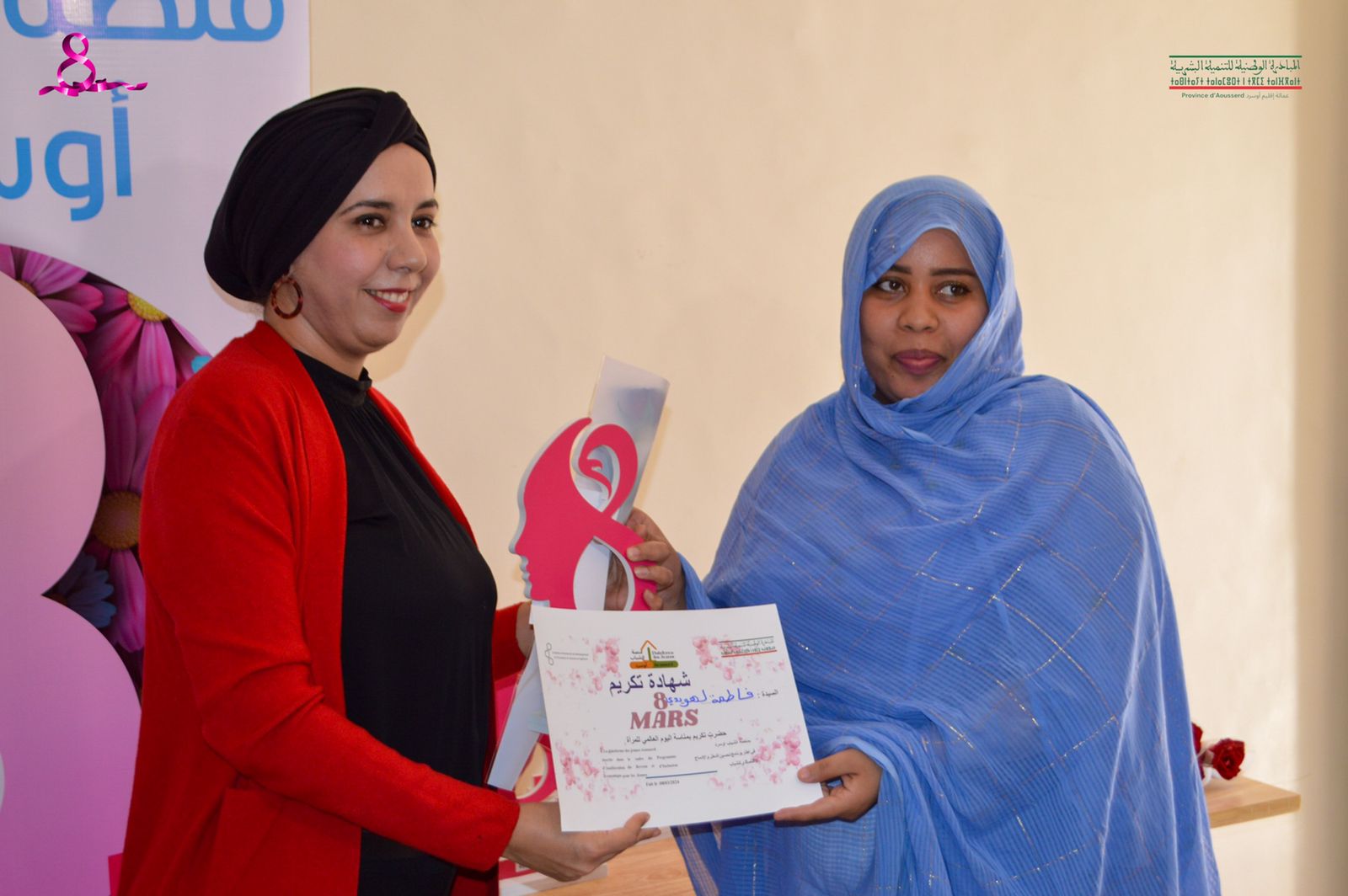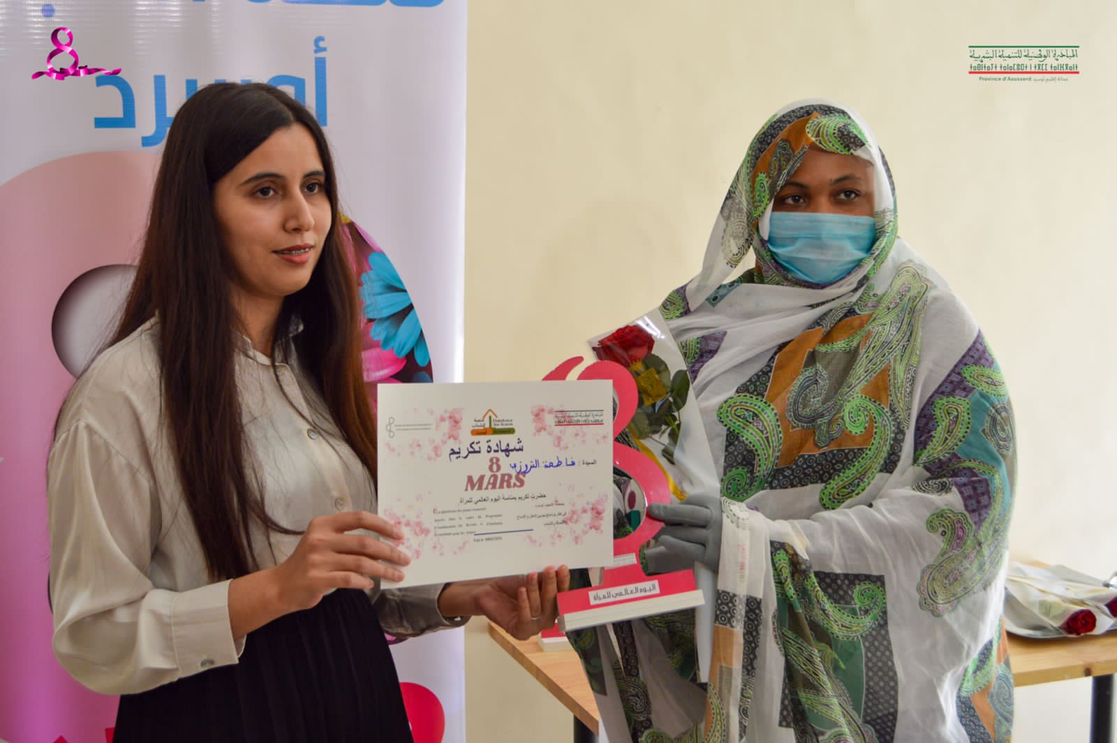 كما ترأس السيد “توفيق بن لمودن” الكاتب العام للإقليم حفلا تكريما بملحقة عمالة الاقليم بالداخلة، نوه من خلاله بالعنصر النسوي المشتغل بعمالة الاقليم وملحقاتها الادارية، واختتم الحفل بتوزيع هدايا رمزية تحفيزية على الحضور.