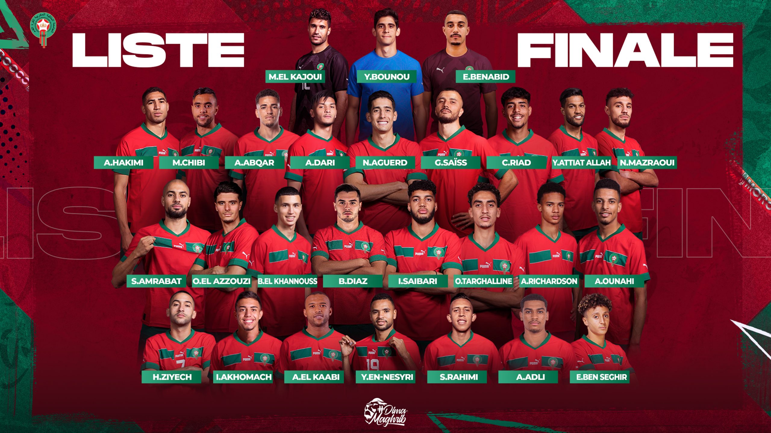 وفيما يلي لائحة المنتخب الوطني التي تم توجيه الدعوة إليها: