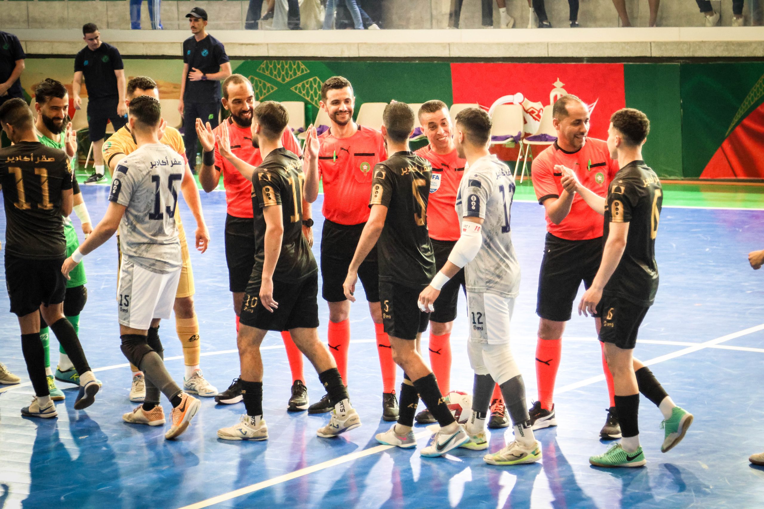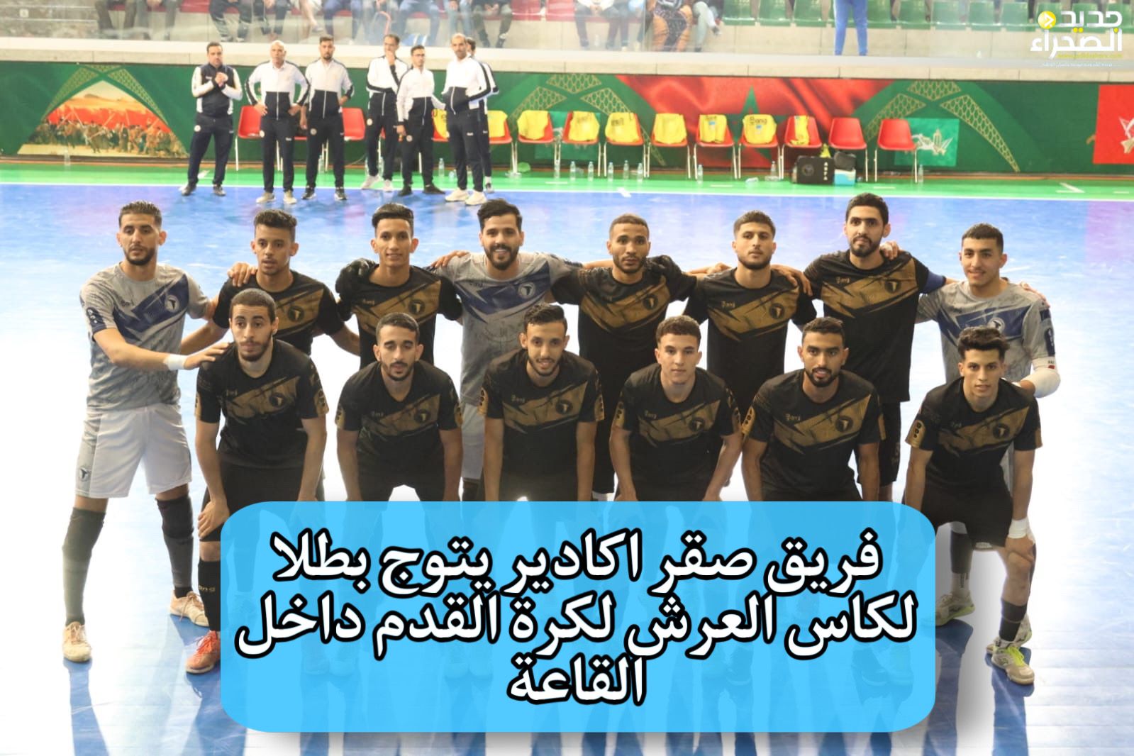 توج قبيل قليل فريق صقر أكادير بطلا لمسابقة كأس العرش لكرة القدم داخل القاعة ، بعد فوزه على فريق شباب علم طنجة بثلاثة أهداف لصفر ، وذلك في المباراة التي جمعت الفريقين على أرضية القاعة المغطاة الحزام بمدينة العيون .
