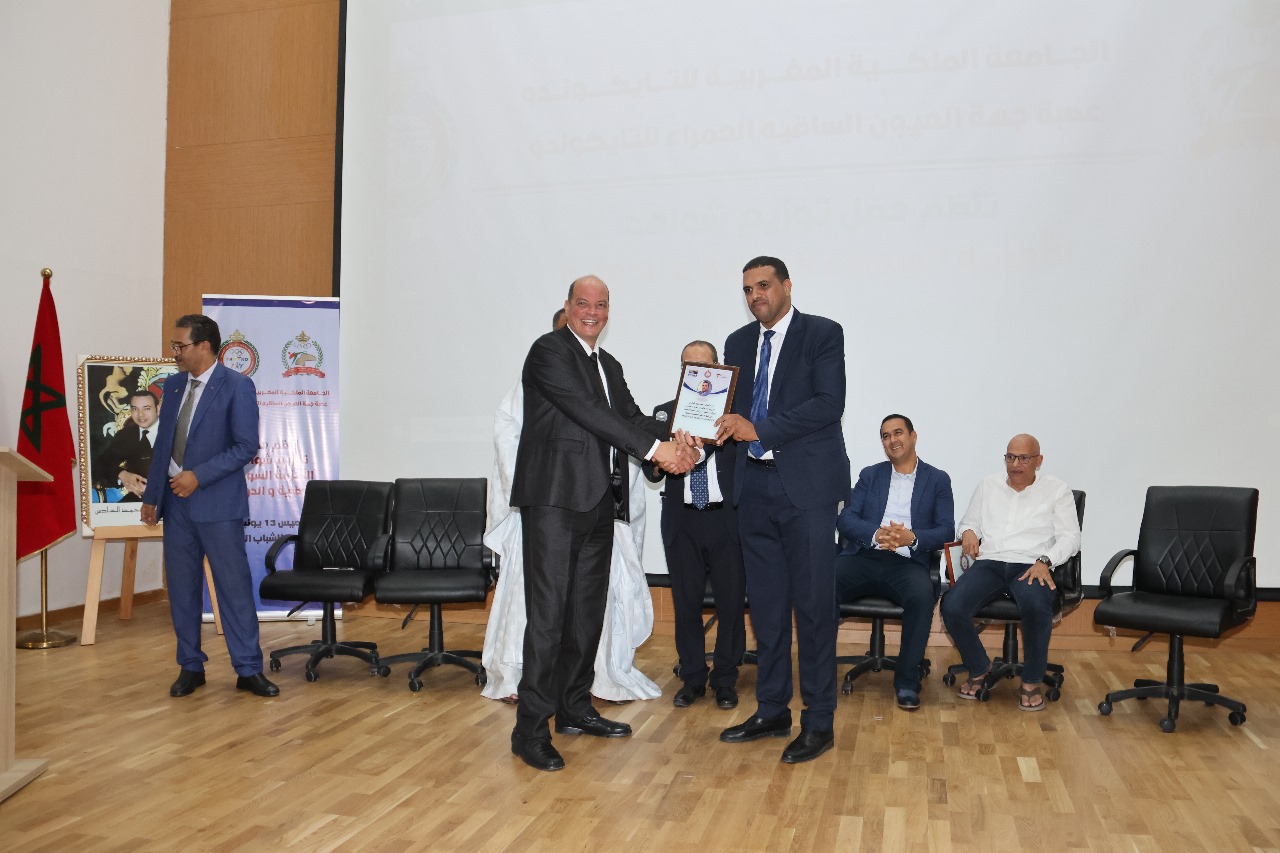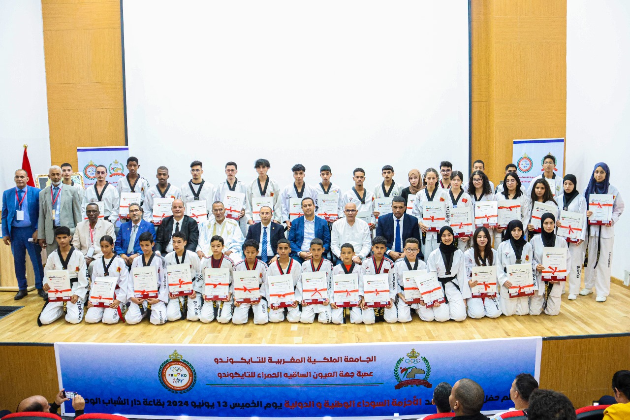 في إطار أنشطتها السنوية نظمت مساء أمس الخميس 13 يونيو 2024 العصبة الجهوية العيون الساقية الحمراء للتايكواندو ، حفل توزيع الأحزمة السوداء الوطنبة والدولية ، وذلك بحضور السادة رئيس الجامعة و باشا المدينة و رئيس العصبة وممثل الوزارة الوصية و نخبة من المهتمين بهذه الرياضة .