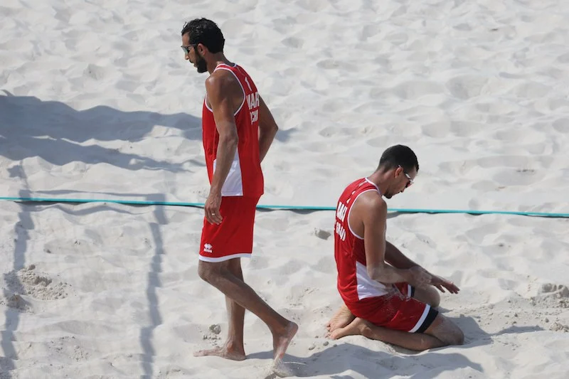 وخسر محمد عبيشة وزهير الغرواي المجموعة الأولى بواقع 21-12؛ في حين أظهر الثنائي المغربي مقاومة صلبة خلال المجموعة الثانية التي انهزم فيها بواقع 26-28.