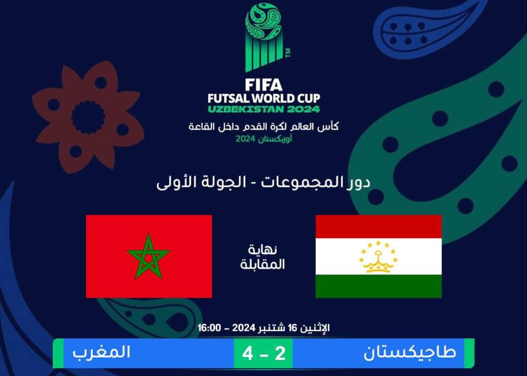 افتتح المنتخب الوطني المغربي لكرة القدم داخل القاعة، مشواره في كأس العالم، بفوز صعب على منتخب طاجيكستان، بأربعة أهداف لهدفين.