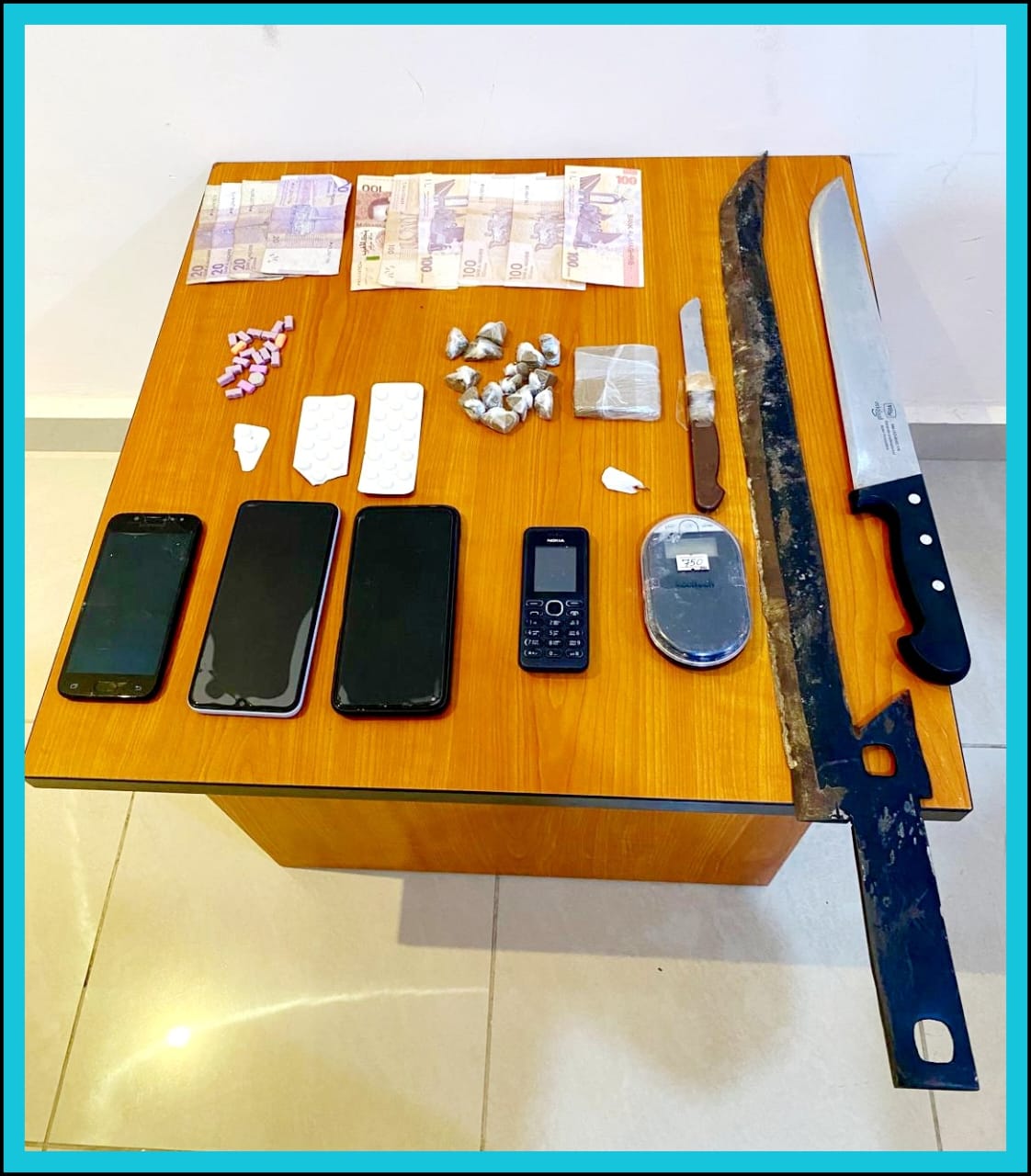 فالموقوف الأول مبحوث عنه بموجب ثلاث مذكرات بحث تتعلق بالاتجار في المخدرات والضرب والجرح، الثاني من أجل الاتجار في المخدرات، الثالث من أجل السرقة الموصوفة، الرابع مبحوث عنه بموجب ثلاث مذكرات بحث من أجل الاتجار في المخدرات وترويج الخمور بدون ترخيص، الخامس من أجل السرقة الموصوفة المقرونة بظروف التعدد واستعمال السلاح الأبيض، السادس مبحوث عنه بموجب ثلاث مذكرات بحث من أجل السرقة الموصوفة، التهديد وإكراه بدني.