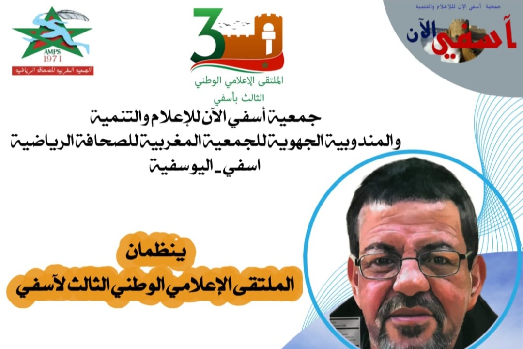بمناسبة تقديم وثيقة المطالبة بالاستقلال تنظم جمعية أسفي الآن للإعلام والتنمية والمندوبية الجهوية للجمعية المغربية للصحافة الرياضية أسفي اليوسفية الملتقى الوطني الثالث للإعلام بأسفي وذلك يوم من 10/11/12/2025 تحت شعار نحو إعلام متجدد ومسؤول دورة المرحوم “جمال براوي ” و ذلك بمدينة الثقافة والفنون .