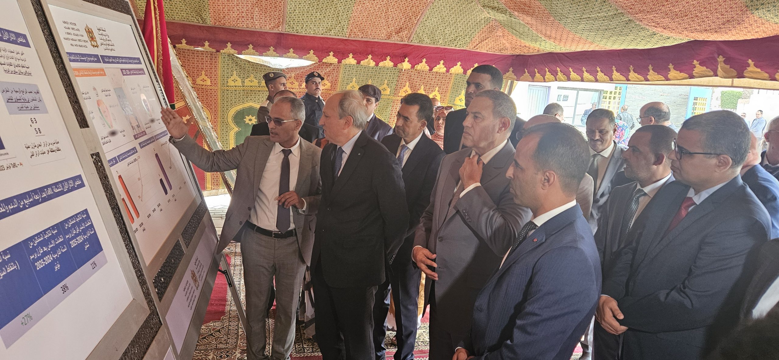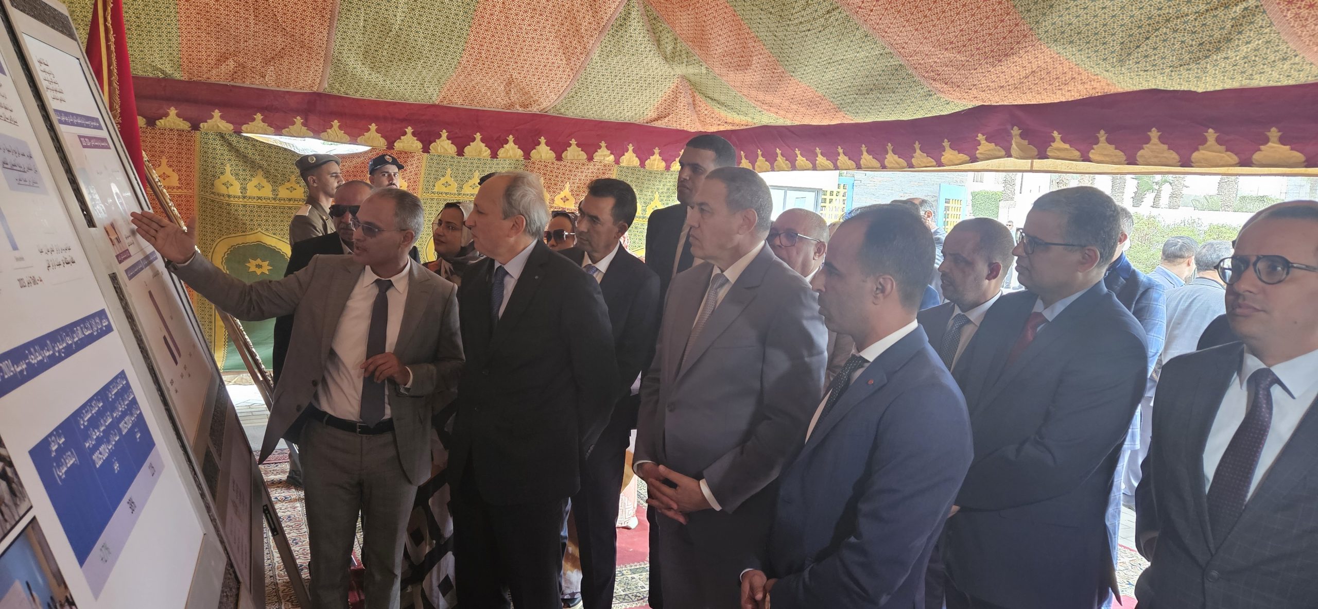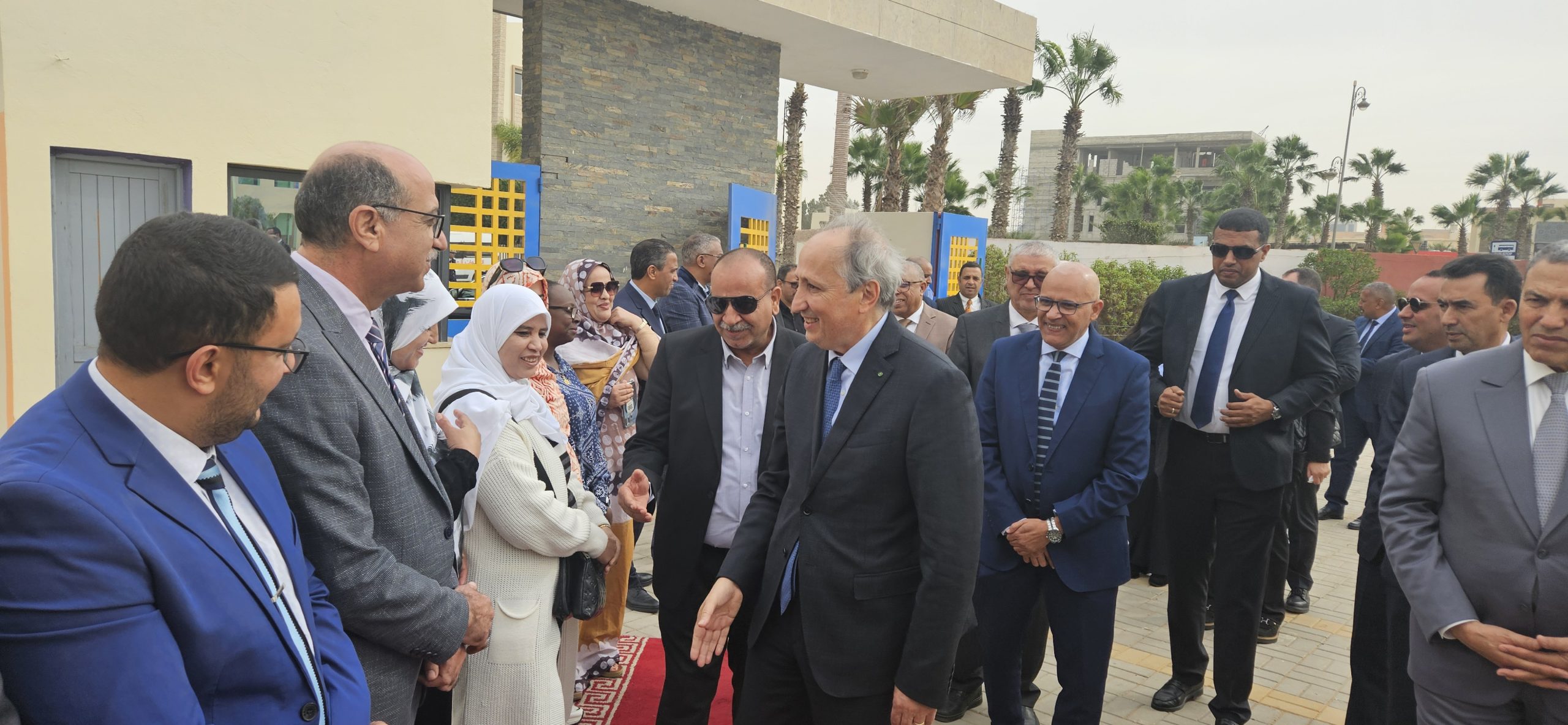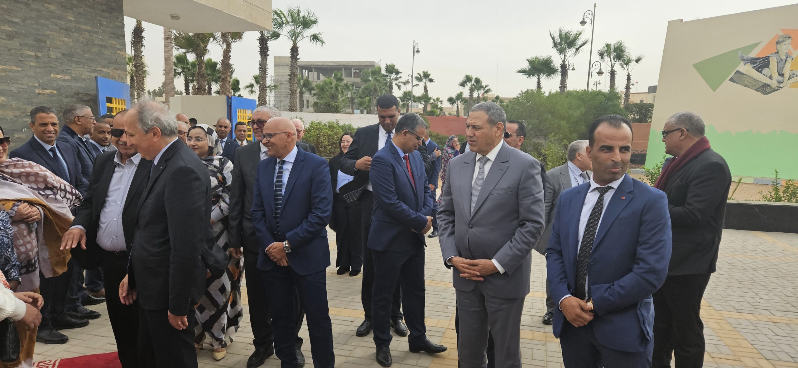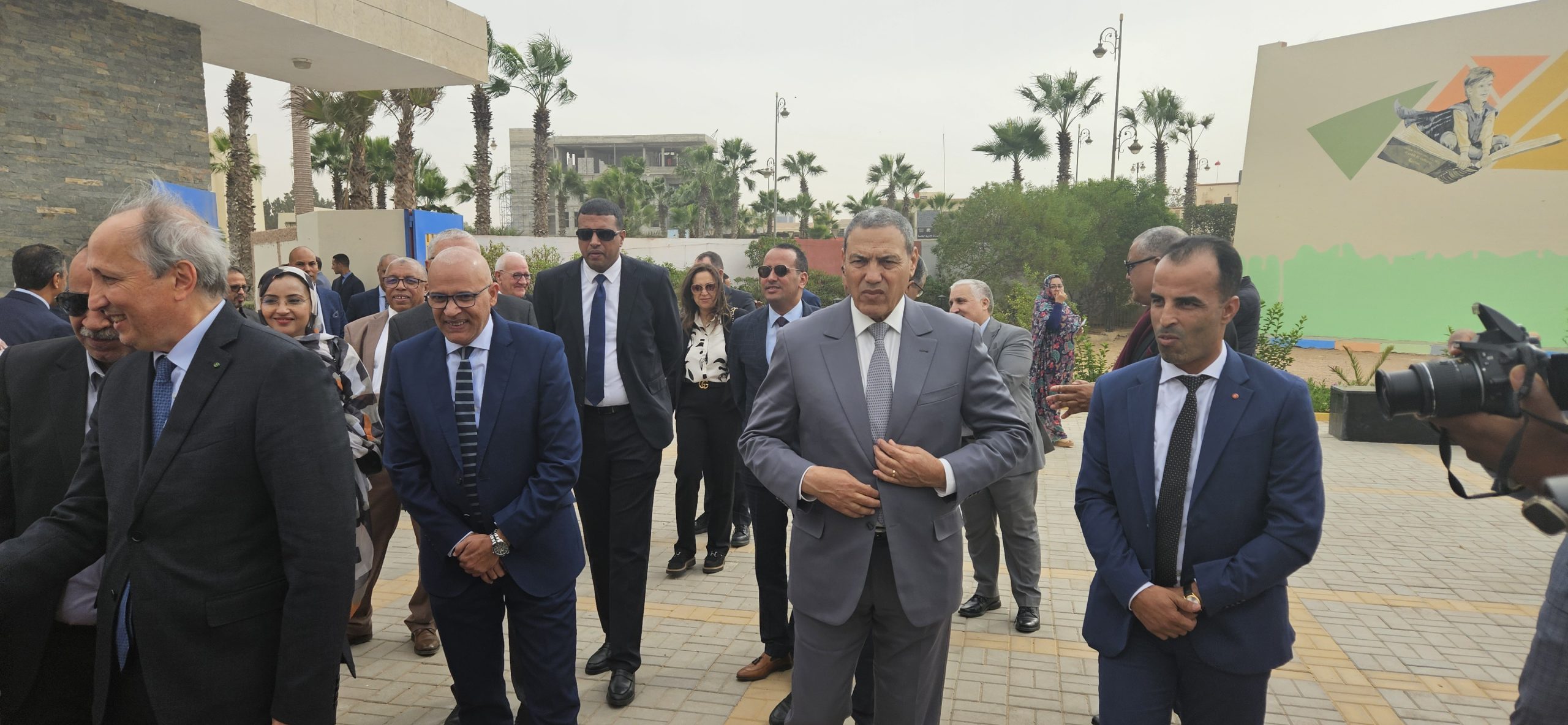 وزير التربية الوطنية والتعليم الأولي والرياضة، كان مرفوقا خلال هذه الجولة بوالي جهة العيون الساقية الحمراء عبد السلام بيكرات، ورئيس جماعة المرسى بدر الموساوي ونائب رئيس المجلس الجماعي للعيون اعبيد امريزيك، ونائب رئيس المجلس الإقليمي للعيون مولود الكيرع، ومدير الأكاديمية الجهوية للتربية والتكوين العيون الساقية الحمراء حمدي اكريطة، والمدير الإقليمي بالعيون محمد البشير التوبالي، وعدد من المسؤولين بالقطاع بالعيون.