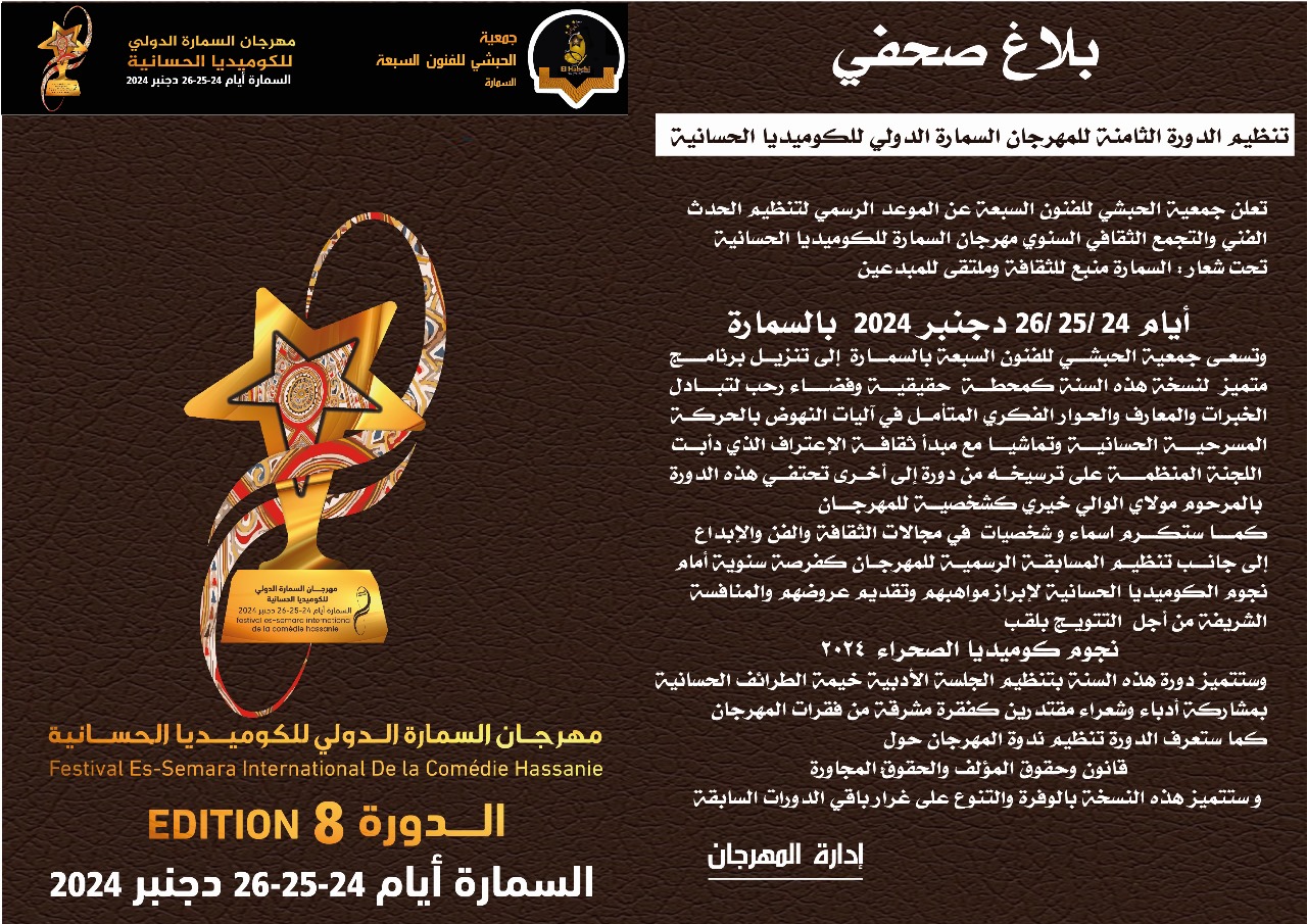 السمارة : جمعية الحبشي تعلن عن موعد مهرجان الكوميدياثقافة وفن إدارة الموقع نشر في 18 ديسمبر 2024 الساعة 23 و 00 دقيقة جديد الصحراء : بلاغ السمارة : جمعية الحبشي تعلن عن موعد مهرجان الكوميديا.مشاركة بفايسبوكFacebookFacebookمشاركة بتويترTwitterTwitter مشاركة بواتسابWhatsAppWhatsApp Share to ارسال ايميلEmailEmail مشاركة بلينكدانLinkedInLinkedInمشاركة بمسنجرMessengerMessenger طباعةPrintطباعة رابط المشاركة :