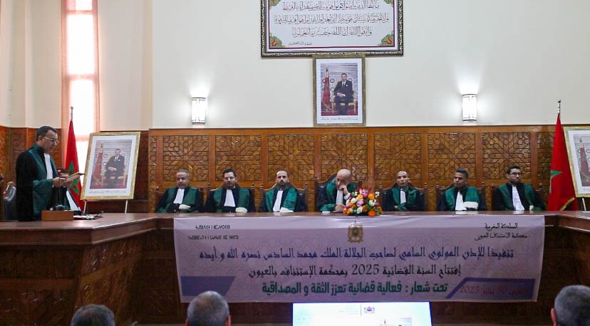 احتضنت القاعة الكبرى بمقر محكمة الاستئناف بالعيون اليوم الخميس، مراسيم افتتاح السنة القضائية الجديدة 2025، وذلك برئاسة الرئيس الأول لمحكمة الاستئناف بالعيون ابراهيم بن تزرت، وحضور الوكيل العام للملك محمد الراوي، وكبار المسؤولين في الجهاز القضائي.