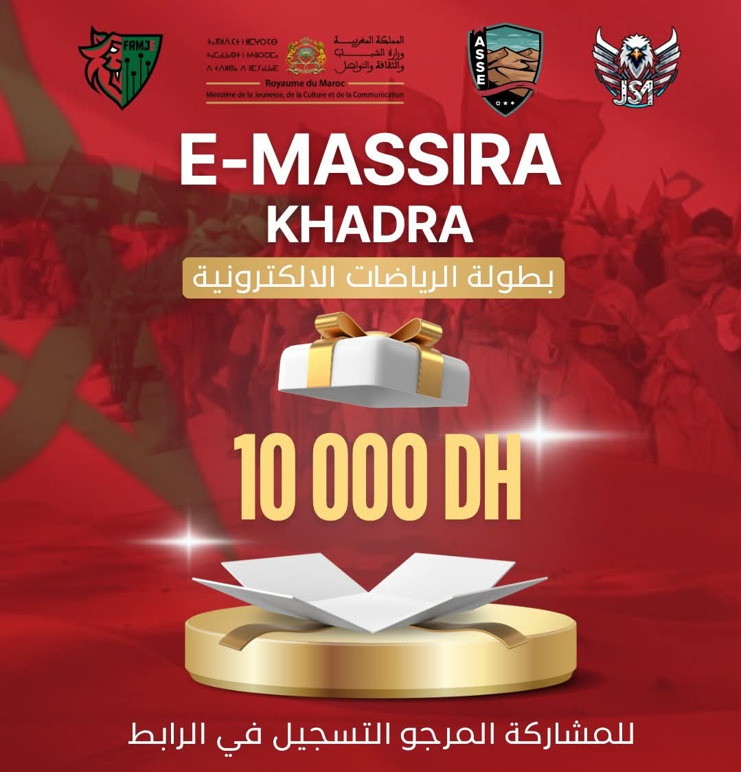في إطار الاحتفالات المخلدة للذكرى الخمسين للمسيرة الخضراء المظفرة، ينظم نادي شباب المسيرة الرياضي للألعاب الإلكترونية ونادي الصحراء للألعاب الإلكترونية، تحت إشراف الجامعة الملكية المغربية للألعاب الإلكترونية، تظاهرة رياضية رقمية تحت اسم “دوري المسيرة الذهبية للرياضات الإلكترونية”، في لعبة Efootball (Console).