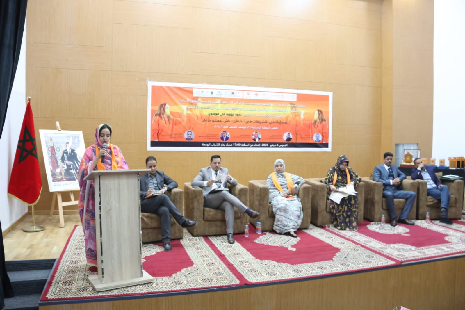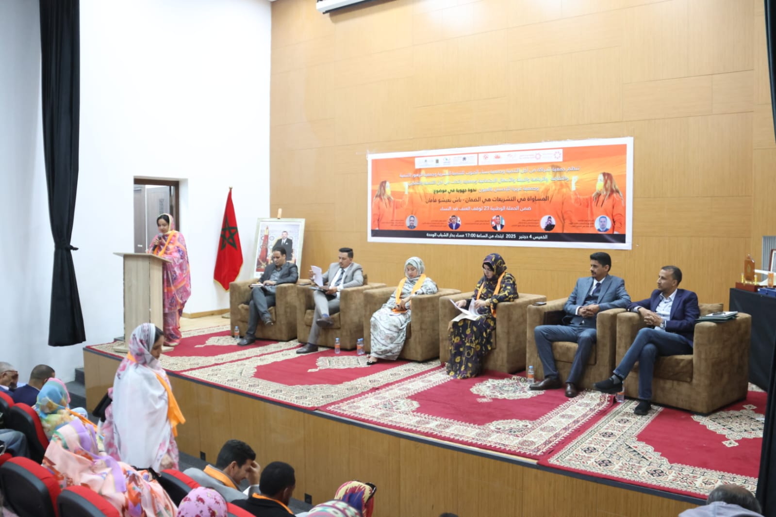 احتضنت دار الشباب الوحدة بمدينة العيون، مساء اليوم الخميس 4 دجنبر 2025، أشغال الندوة الجهوية المنظمة تحت شعار: “المساواة في التشريعات هي الضمان باش نعيشو في أمان”، وذلك ضمن فعاليات الحملة الوطنية الـ23 لوقف العنف ضد النساء، وذلك بمشاركة ثلة من الفاعلين المؤسساتيين والحقوقيين، إلى جانب باحثين وخبراء في مجالات القانون وحقوق الإنسان.