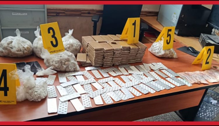 و أسفرت عمليتان أمنيتان بحيي الوحدة والبيشات عن حجز حوالي 11 كيلوغراماً من مخدر الشيرا و177 غراماً من الكوكايين و1049 قرصاً مهلوساً من نوع “ريفوتريل”، إضافة إلى أزيد من 3 كيلوغرامات من مسحوق الكيف وكيلوغرام ونصف من القنب الهندي والتبغ، فضلاً عن مبلغ مالي يفوق 19.500 درهم يُشتبه في كونه من عائدات هذا النشاط الإجرامي .