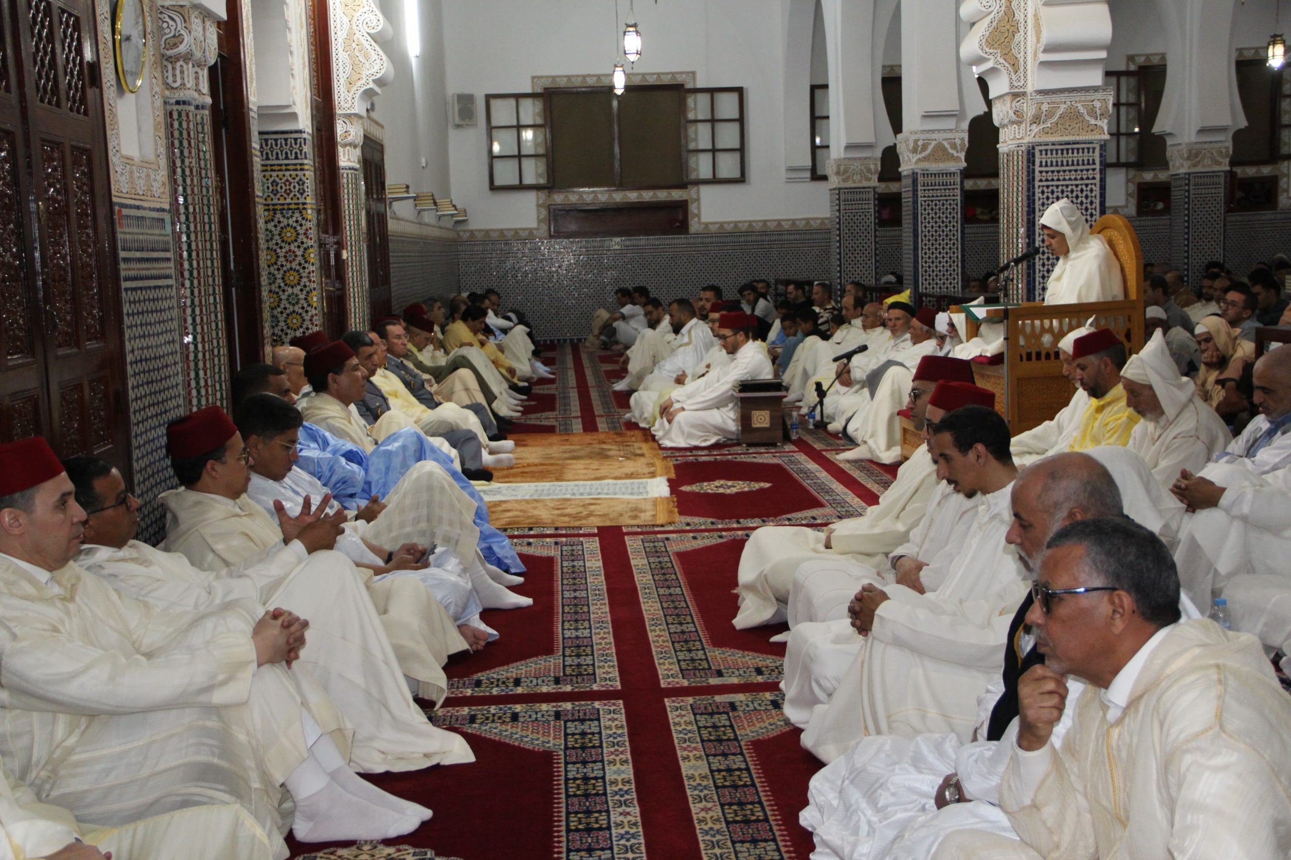 وقد تميز هذا الحفل الديني بحضور رسمي وازن، تقدّمه والي جهة العيون الساقية الحمراء، عبد السلام بيكرات، إلى جانب رئيس مجلس جماعة العيون، مولاي حمدي ولد الرشيد، فضلا عن عدد من المنتخبين، ورؤساء المصالح الخارجية، وشخصيات مدنية وعسكرية، إضافة إلى ثلة من الأئمة والفقهاء، وحشود غفيرة من المصلين الذين غصّت بهم جنبات المسجد.