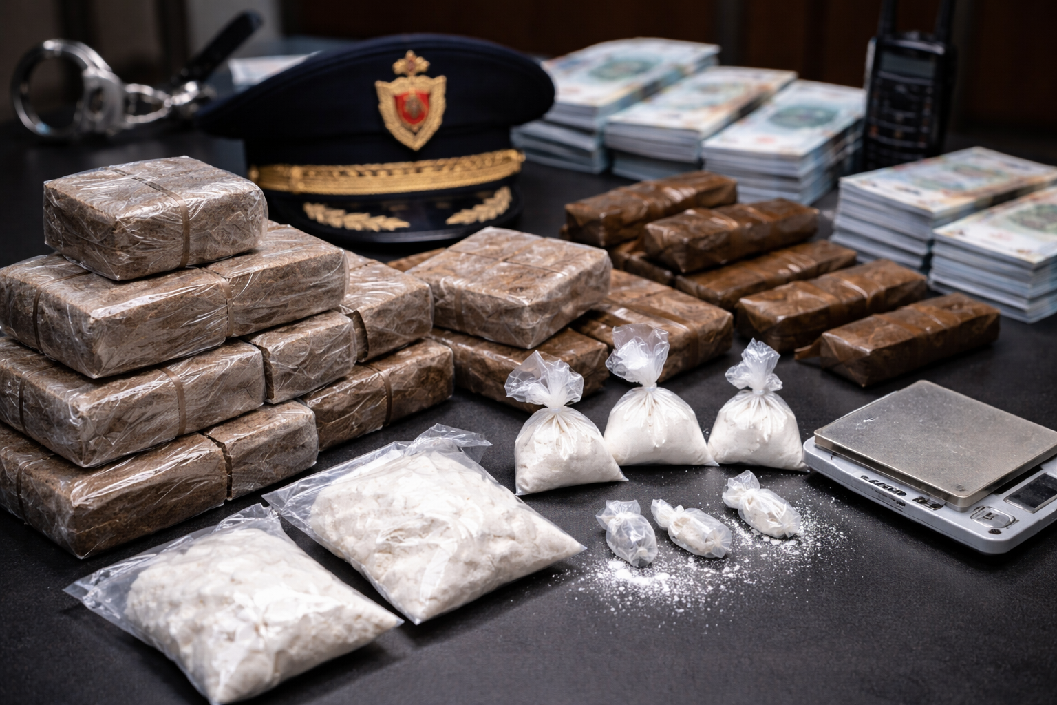 وقد تم توقيف المشتبه فيهما على متن سيارة خفيفة مكتراة، متلبسَين بحيازة مجموعة من قطع مخدر الشيرا جاهزة للترويج.