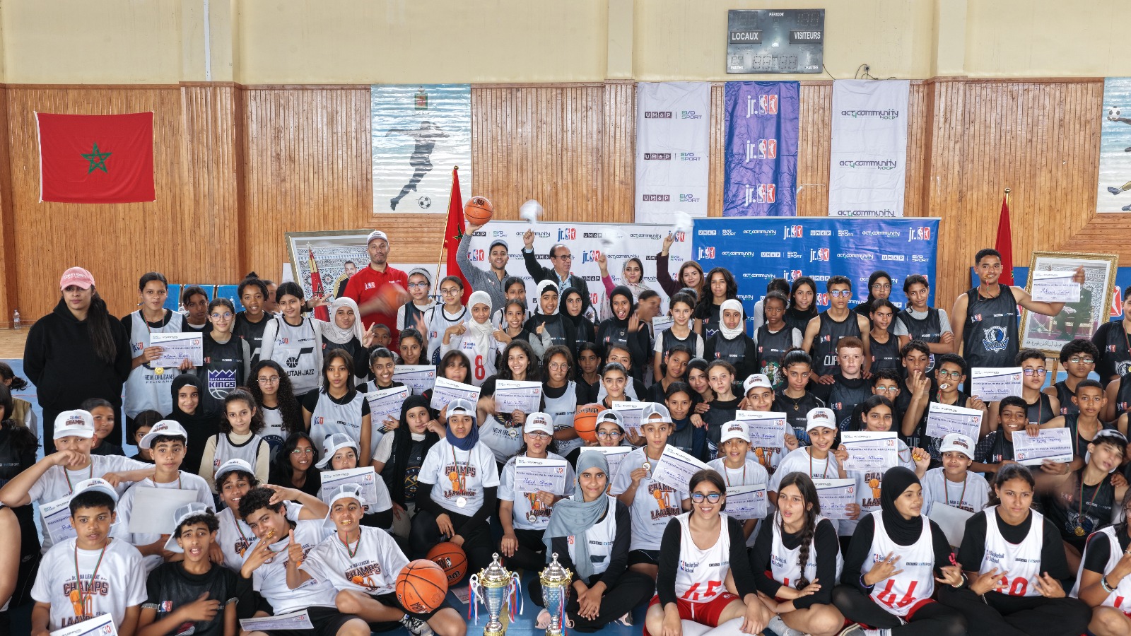 في أجواء رياضية مفعمة بالحماس وروح التنافس ، إختَتَمت مبادرة Act4Community Phosboucraa الفعاليات النهائية لدوري كرة السلة للناشئين (ذكورًا وإناثًا) ضمن برنامج Jr. NBA League، وذلك يوم السبت 11 أبريل 2026، بالقاعة المغطاة الوفاق بمدينة العيون.