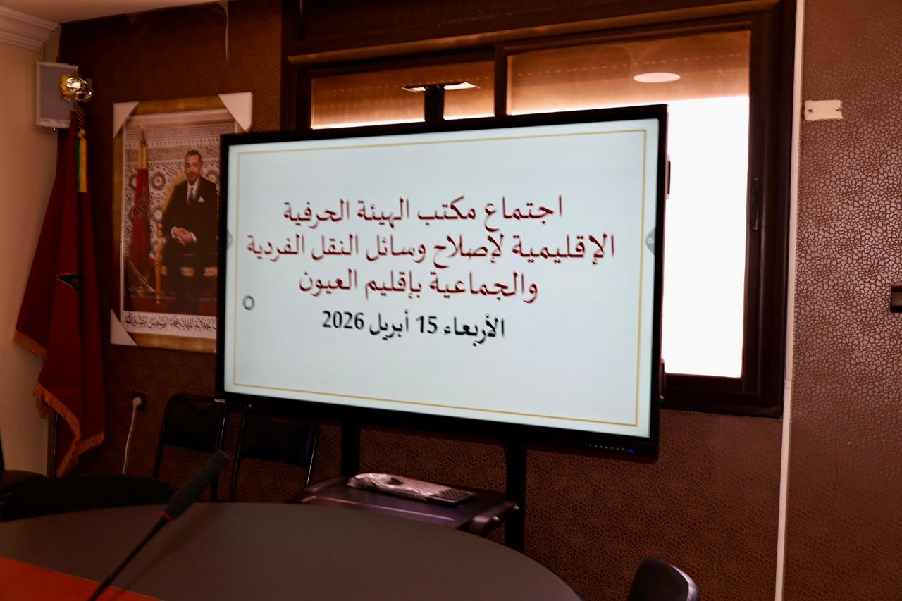 انعقد صباح اليوم الأربعاء 15 أبريل 2026، اجتماع مكتب الهيئة الحرفية الإقليمية لإصلاح وسائل النقل الفردية والجماعية بإقليم العيون، برئاسة السيد مولود الكيرع، وبحضور أعضاء المكتب المسير، وذلك في إطار تعزيز التنسيق ومواكبة تطورات القطاع على المستوى المحلي.