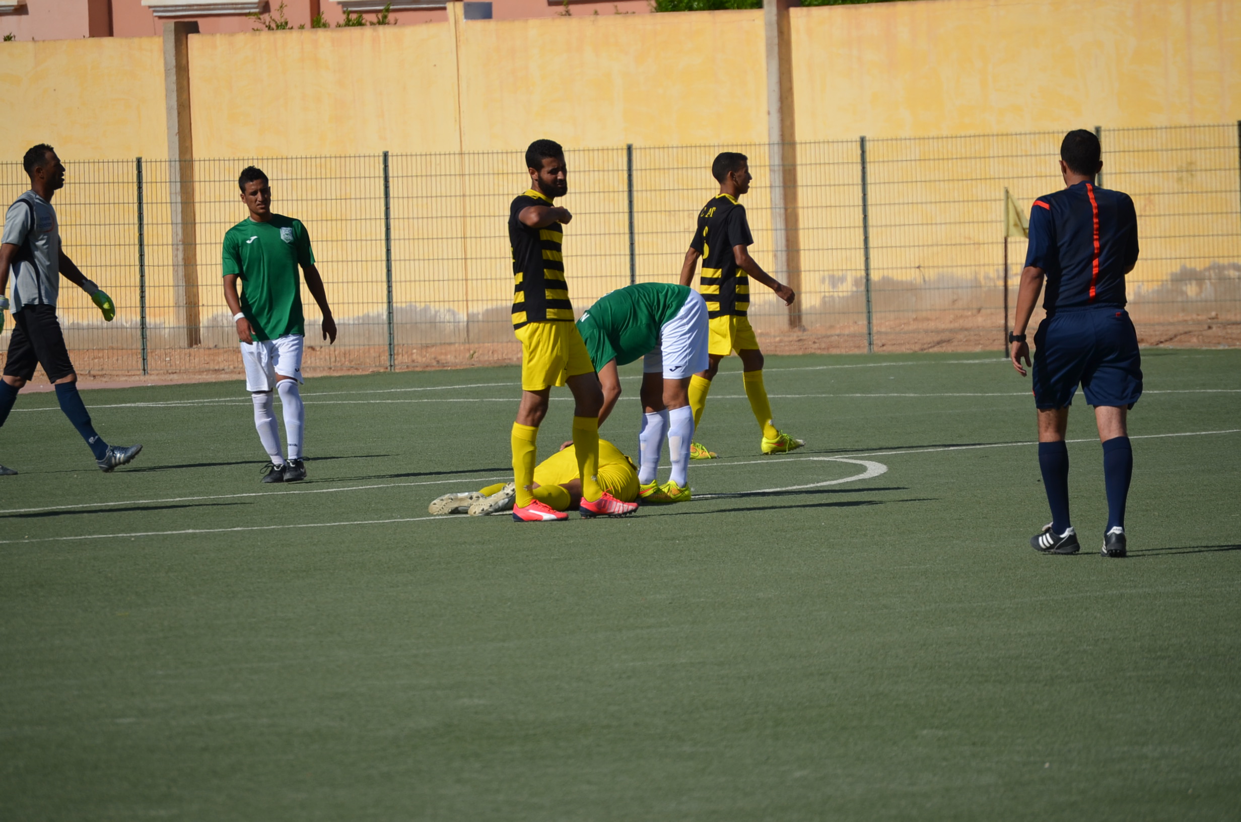 اللقاء الذي جمع الفريقين على أرضية ملعب مولاي رشيد بالعيون عرف سيطلرة واضحة للأشبال خلال الخمس و الأربعين دقيقة الأولى ،و التي أنهاها أصدقاء العميد محمد الجماني بهدفين لصفر، سجلهما المتألق يوسف تقي الله في الدقيقتين 26 و 31 و هي النتيجة التي أنتهى عليها شوط المباراة الأول.