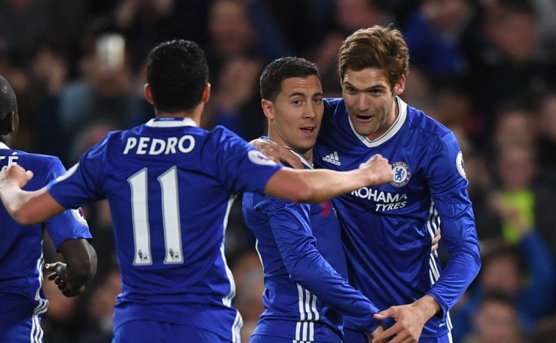 وفي الدقيقة 19 سدد فيرناندينيو كرة تصدى لها كورتوا ببراعة، وفي الدقيقة 23 سدد فابريغاس كرة في العارضة، ليدرك أغويرو التعادل من متابعة تسديدة سيلفا التي تصدى لها كورتوا في الدقيقة 26، وفي الدقيقة 28 سدد ساني كرة تصدى لها كورتوا، ليأتي الثاني من ركلة جزاء في الدقيقة 35 تسبب بها فيرناندينيو بعرقلة بيدرو، أهدرها هازارد في المحاولة الأولى ولكن تابعها في الشباك.